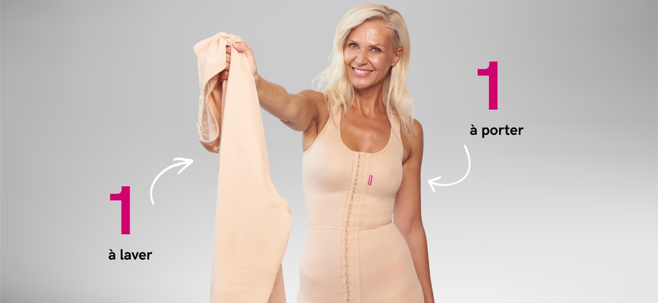 La plupart des patients trouvent utile d'avoir au moins deux gaines de compression, l'une à porter pendant que l'autre est lavée. Un soutien continu tout au long de la convalescence aide à maintenir le confort et la stabilité.