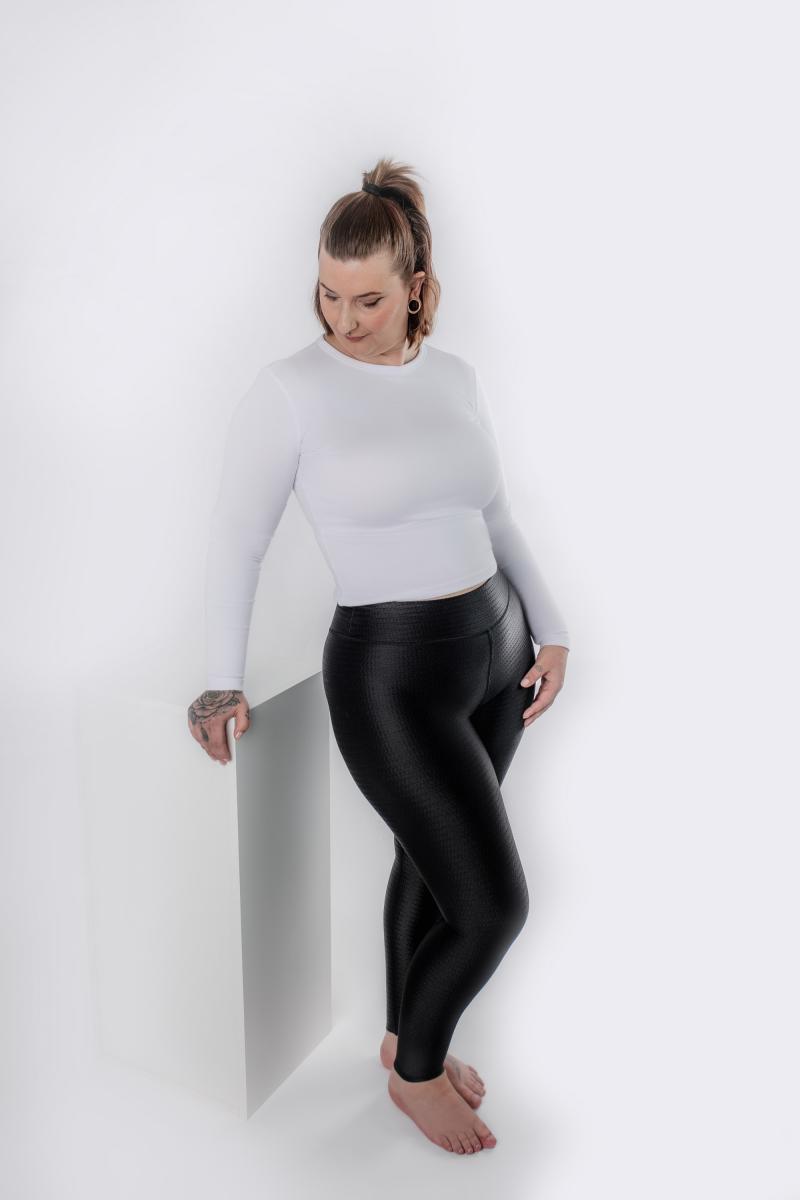 J'ai beaucoup expérimenté les vêtements de compression, des bas de contention jusqu'aux genoux prescrits par le dermatologue aux collants de compression intégrale jusqu'sous la poitrine. En théorie, ceux-ci étaient parfaitement adaptés, mais comme je travaille dans un bureau, je me suis rendu compte qu'il m'était impossible de les porter toute la journée sans qu'ils ne commencent à m'irriter et à me frotter. Je les ai donc rangés au fond de mon armoire et je porte souvent les ACTIVE leggings de LIPOELASTIC. Ils offrent une compression agréable sans que je me sente immédiatement « enfermée ». Je les ai dans les trois couleurs, ce qui me permet de les alterner facilement pour un usage quotidien.