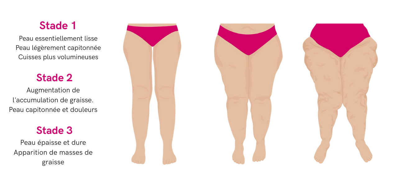 En effet, l’atteinte de l’abdomen reste fréquente chez les patientes atteintes de lipœdème : environ 31 % au stade II et jusqu’à 70 % au stade III. Les études de l’équipe du Dr Bruno montrent toutefois que cette localisation n’apparaît quasiment jamais seule : elle est systématiquement associée à un lipœdème des membres inférieurs et/ou supérieurs.